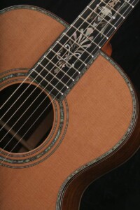 An SJ cut-away ordered by a Japanese customer to commemorate the victims of the recent Japanese Tsu.nami. This guitar features inlays designed by the customer and executed by Larry Robinson.
